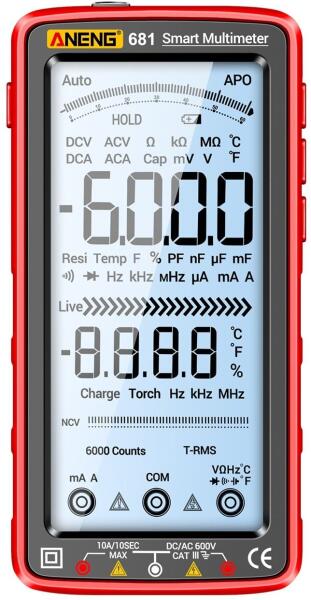 Az ANENG 681 egy digitális multiméter a mért mennyiség automatikus felismerésével. Automatikus üzemmódban történő bekapcsoláskor a műszermaga azonosítja az AC/DC feszültséget vagy ellenállást, és kiválasztja a megfelelő tartományt. Ez nagyban leegyszerűsíti a munkát és minimálisra csökkenti a hibás beállítások kockázatát.