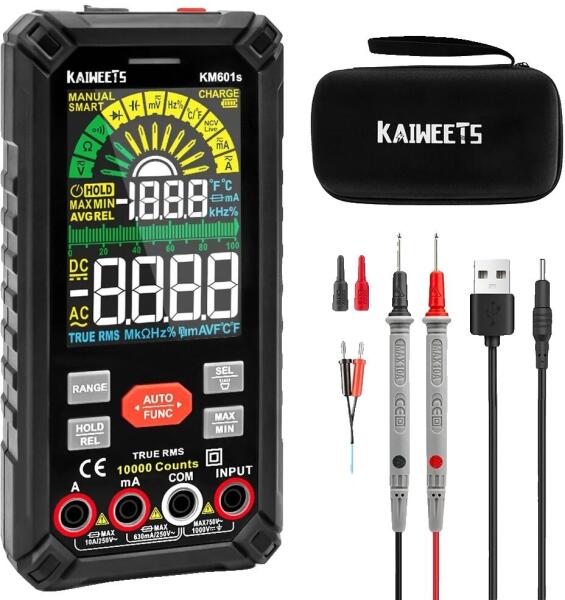 Digitális multiméter, intelligens mód, újratölthető akkumulátor, KAIWEETS KM601S