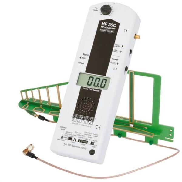 Gigahertz Solutions HF35C RF Mérő: Találja meg az elektromágneses sugárzás forrását otthonában! ? A Gigahertz Solutions HF35C kézi RF mérővel egyszerűen és gyorsan felmérheti az otthonában vagy irodájában található elektromágneses sugárzást 800 MHz és 2.7 GHz közötti frekvencián. Ideális eszköz a mobiltelefonok, vezeték nélküli eszközök (WLAN, Bluetooth), DECT telefonok és radarberendezések által kibocsátott sugárzás azonosítására. Főbb jellemzők:Mérési tartomány: 1,1 μW/m2 - 1,999 μW/m2 Frekvenciatartomány: 800 MHz - 2 500 MHz Pontosság: 6 dB, 9 számjegy Impulzussugárzás-azonosítás: Hangjelzéssel jelzi a sugárzás típusát (GSM, UMTS/G3, DECT, WLAN, Bluetooth, radar) Csúcsérték és átlagérték mérés: Átkapcsolható funkció a pontosabb eredményekért A csomag tartalma: HF35C EMR-mérő készülék Csatlakoztatható, irányított log. -per. antenna antennakábellel Alkáli elem Részletes használati utasítás (angol nyelven) Háttérinformációk az "elektromos szmog" témájában Kinek ajánljuk? A Gigahertz Solutions HF35C mérőműszer ideális választás:Épületbiológusoknak: Az expozíció értékeléséhez és a helyreállító intézkedések hatékonyságának ellenőrzéséhez. Nem professzionális felhasználóknak: Az elektromágneses sugárzás egyszerű és gyors felméréséhez otthonukban. Azoknak, akik aggódnak az elektromágneses sugárzás egészségügyi hatásai miatt: A sugárzási források azonosítására és a kitettség csökkentésére. Egyszerű használat: A készülék kezelése egyszerű, így bárki könnyedén használhatja, hogy felmérje a környezetében lévő elektromágneses sugárzást és megtegye a szükséges lépéseket a kitettség csökkentésére. ?