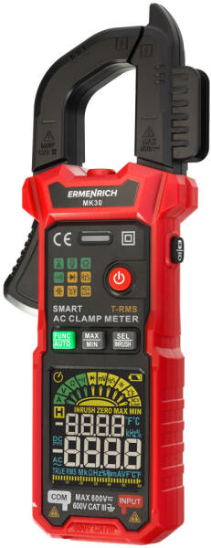 Tudjon meg többet Az Ermenrich Ping MK30 digitális lakatfogó 7 mérési funkciót egyesít, lehetővé téve az elektromos hálózatok és berendezések átfogó diagnosztikáját. A készülék önállóan választja ki az egyes üzemmódokhoz tartozó mérési határértéket, és a beépített képernyőn számok és értékek formájában, grafikus skálán jeleníti meg a mért értékeket. A Smart funkció megléte nagyban leegyszerűsíti a készülék használatát: A készülék teljesen automatikus üzemmódban méri a feszültséget, az ellenállást és az áramkör folytonosságát. Kis mérete lehetővé teszi, hogy a készüléket nehezen hozzáférhető helyeken használja, a kontrasztos háttérvilágítású képernyő jól látható a sötétben, az adattartás funkció pedig lehetővé teszi a képernyőn található értékek „befagyasztását, amíg azokat kényelmesen le nem tudja olvasni. A készülék True RMS funkcióval rendelkezik, amellyel a változó mennyiségek kiszámítása a valós négyzetes középérték alapján történik, így a mért érték a lehető legpontosabb lesz. A lakatfogó váltakozó áramot mér az áramkör megszakítása nélkül, valamint olyan egyéb paramétereket képes mérni, mint az ellenállás, az egyen- és váltakozó feszültség, a kapacitás, a frekvencia, a munkaciklus és a hőmérséklet. A készülék diódatesztelő és folytonossági üzemmódban, valamint fázisérzékelőként és veszélyes feszültséget jelző érzékelőként (NCV) is használható. Az Ermenrich Ping MK30 digitális lakatfogó elemmel működik, automatikus kikapcsolási funkcióval rendelkezik, és alacsony töltöttségi szint esetén jelzi, ha ki kell cserélni az elemeket. Főbb jellemzők: