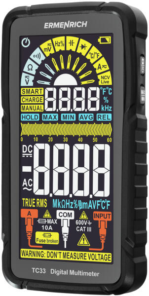 Funkciók: feszültségmérés, áramerősség-mérés, ellenállásmérés, kapacitásmérés, frekvenciamérés, munkaciklusmérés, hőelemes érzékelés, szakadásvizsgálat, diódateszt, NCV, elemteszt. A mérési határérték automatikus beállítása