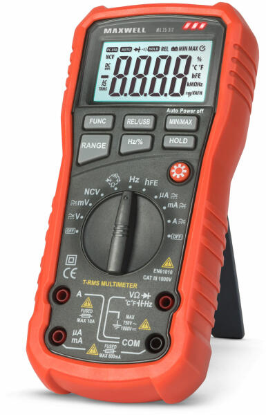 Maxwell Digitális multiméter - Automatikus méréshatárral + tranzisztor méréssel (25312)