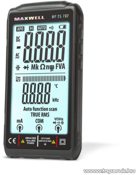 Maxwell MP 25 702 Automata FullScreen akkumulátoros multiméter, 4, 2"-os kijelzővel, munkalámpával, Type-C USB töltőcsatlakozóval (25702)
