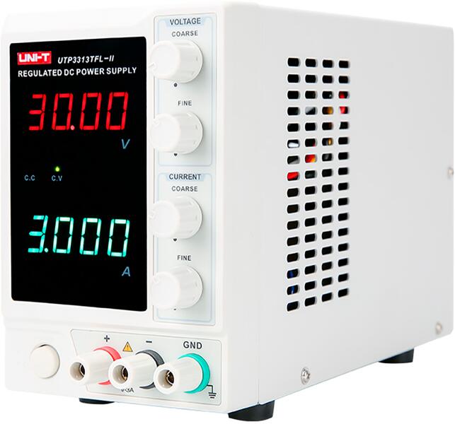 Laboratóriumi tápegység UTP3313TFL-II . Az UTP3313TFL-II laboratóriumi tápegység egy precíziós eszköz, amely az elektronikus áramkörök stabil tápellátására szolgál, biztosítva a megbízható működést laboratóriumokban és műhelyekben. Fejlett funkcióinak és kiváló minőségű kivitelezésének köszönhetően ideális megoldás a pontosságot és biztonságot igénylő szakemberek számára. Pontos tápellátás és stabilitás . AUTP3313TFL-II 0 és 30 V között állítható kimeneti feszültséget kínál kiváló, ?0,01%+3 mV stabilitással, ami kivételes pontosságot garantál a kényes elektronikával való munka során. A kimeneti áram 0 és 3 A között állítható, nagy pontossággal és ?0,1%+5 mA stabilizálással. A tápegység akár 90 W kimeneti teljesítményt is biztosít, így különböző típusú eszközök táplálására alkalmas. Funkcionalitás és biztonság . Az UTP3313TFL-II tápegység kettős kijelzővel rendelkezik, amely lehetővé teszi a feszültség és az áram egyidejű felügyeletét. Emellett a készülék alacsony, ?1 mVrms-os hullámzást és zajt kínál, így minimálisra csökkenti az érzékeny áramkörök zavarásának kockázatát. A tápegység rövidzárlat- és túlterhelés elleni védelemmel is rendelkezik, amely mind a készüléket, mind a táplált áramköröket védi. Kompakt kialakítás és ergonómia . A tápegységet kompakt és robusztus kialakítása jellemzi, amely megkönnyíti a munkaasztalon való elhelyezését. Kompakt méreteivel (105 x 165 x 249 mm) és 3 kg-os súlyával könnyen hordozható és kezelhető. A 110/220 V AC hálózati tápegység a különböző feszültségszabványokhoz való alkalmazkodóképességgel az UTP3313TFL-II sokoldalú eszközzé teszi az UTP3313TFL-II-t, amely a legkülönbözőbb körülmények között is készen áll a munkavégzésre. .