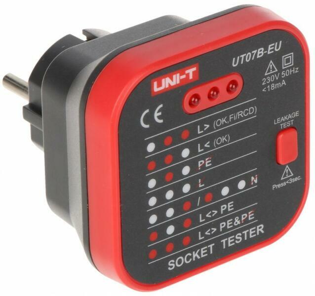 A UNI-T UT07B-EU aljzattesztelővel ellenőrizhetők az aljzatkapcsolási hibák. Ezt a tesztelő eszközt széles körben használhatja kereskedelmi és lakossági területeken. Az UT07B tesztelő tartalmazza a szivárgásvizsgálat funkciót is, amellyel ellenőrizhető, hogy a megszakítók megfelelően működnek-e. Műszaki paraméterek: Hiányzó fázis, föld és nullavezető kijelzése Fordított fázis- és a föld-, valamint a földelés hiányának jelzése Fordított fázis-és föld jelzése Megfelelő fáziscsatlakozás jelzése Általános jellemzők: A termék színe Piros és szürke A termék nettó súlya 80,5 g Termék mérete 65mm x 65mm x 61mm Galéria