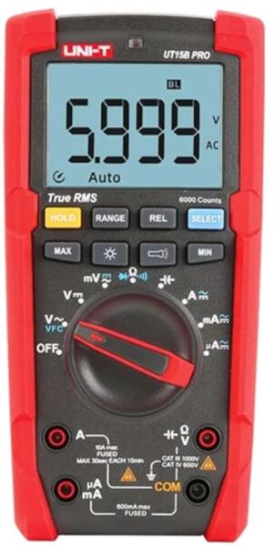 Az UT15B PRO 1000 V True RMS digitális multiméter egy rendkívül megbízható, biztonságos és tartós, tényleges RMS értékeket mérő multiméter, amelyet CAT III 1000 V / CAT IV 600 V kategóriájú