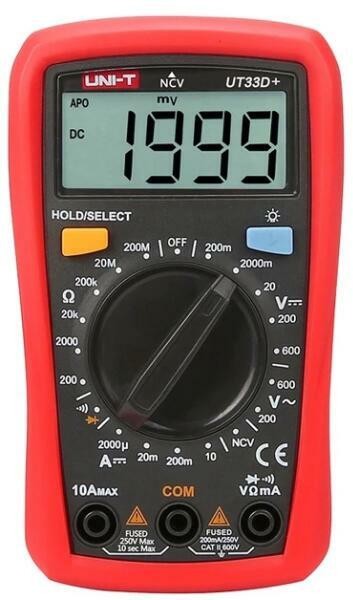 Univerzális mérő Uni-T UT33D + MÉRÉSI TARTOMÁNYOK DC feszültség: 200 mV / 2000 mV / 20 V / 200 V / 600 V? (0,5% + 2) AC feszültség: 200 V / 600 V? (1,2% +3)