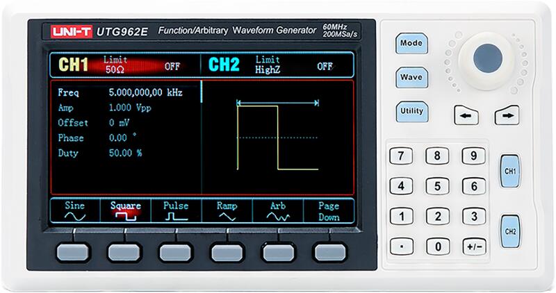 UTG932E digitális jelgenerátor az Uni-t-tőla kimeneti csatornák száma: 2mintavételezés: mintavételezés: 200MSa/sTFT képernyő átlója: 4,3 hüvelyktápegység: DC 5V/2Akijelző: 4,3 hüvelykes TFT LCD (480 x 272 px)méretek: 172 x 90 x 68 mmsúly: 0,77 kgtartozékok: tápkábel, USB-kábel, BNC-kábel