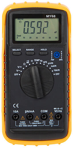 A MY-68 XTREME digitális mérőműszer egy olyan termék, amely garantálja a pontosságot és a precizitást. A nagy és világos LCD kijelző garantálja az eredmények helyes leolvasását. A mérőműszer gyártásához felhasznált anyagok kiváló minőségűek, ami a termék tartósságában és hosszú használatában tükröződik. Kényelmes használat A készülékházba épített műanyag tartó lehetővé teszi, hogy a készüléket úgy helyezzük el, hogy a felhasználó számára kényelmes legyen, és ne kelljen a mérőműszert állandóan a kezében tartania - ez minden bizonnyal megkönnyíti a mindenféle kézi munkát, a mérési eredmények leolvasását pedig a rendkívül világos és éles LCD-kijelző biztosítja. Ezenkívül a levehető gumiborítás megóvja a készüléket a mechanikai sérülésektől, és megvédi a felhasználót az áramütéstől is. Sokféle alkalmazásA mérőműszer nemcsak a professzionális műhelymunkások, hanem az amatőrök számára is ideális leszelektronikában. A készülék lehetővé teszi az akkumulátorok, háztartási aljzatok vagy vezetékek